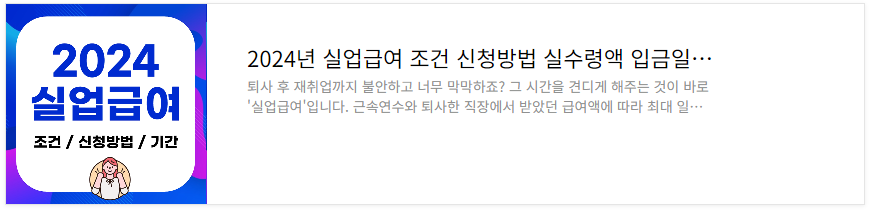 추가적으로 실업급여 관련해서 실수령액과 수급일, 수급기간 계산하는 법에 대한 내용은 아래 내용 참고해주세요.